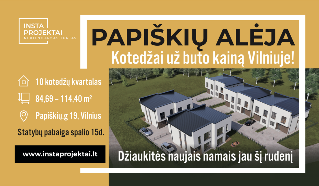 Papiškių alėja – trys pasirinkimai patogiam šeimos gyvenimui Parašykite komentarą / Butai / Julija Ambarcumian 2026-01-16 Džiaugiamės galėdami pristatyti Papiškių alėjos projektą – vietą, kur ramybė, kokybė ir apgalvoti sprendimai susijungia į patogų kasdienį gyvenimą. Daugiau Daugiau ... Papiškių alėja – trys pasirinkimai patogiam šeimos gyvenimui Read More »
