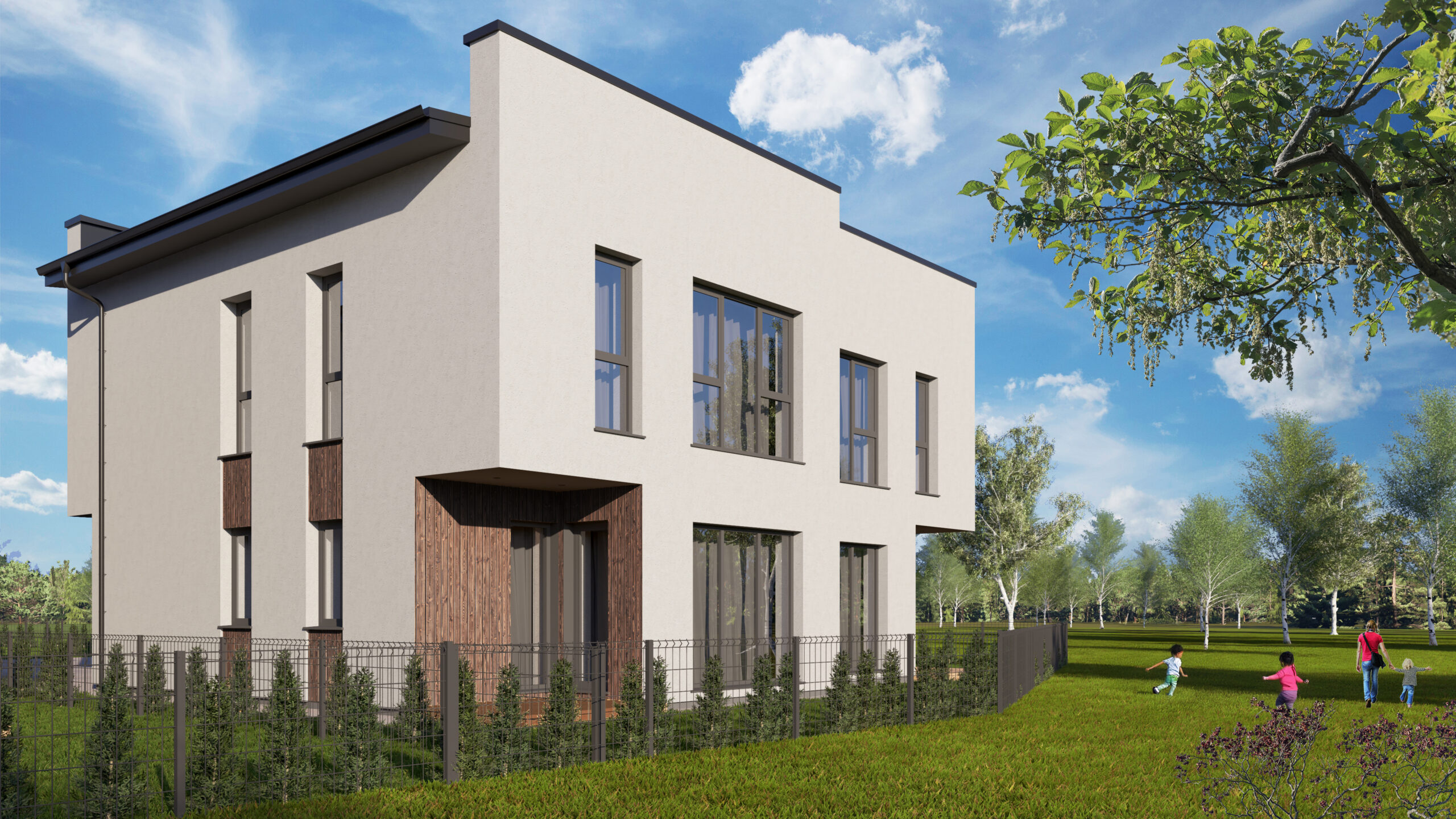 Dvibučių kotedžų kvartalas Vilniuje, Papiškių gatvėje. 5 kambariai, sklypai nuo 4,20 iki 5,86 a. Siūlomi įvairių kvadratūrų variantai – nuo 84,69 iki 114,40 m².